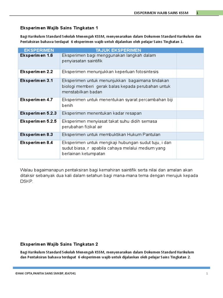 Kssm 8 Eksperimen Wajib Kssm Tingkatan 1