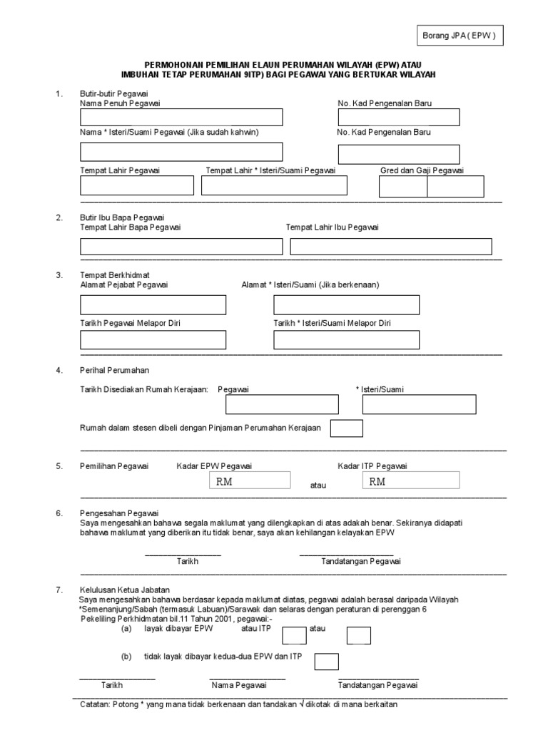 Permohonan Pemilihan Elaun Perumahan Wilayah Epw Atau Ppt Download