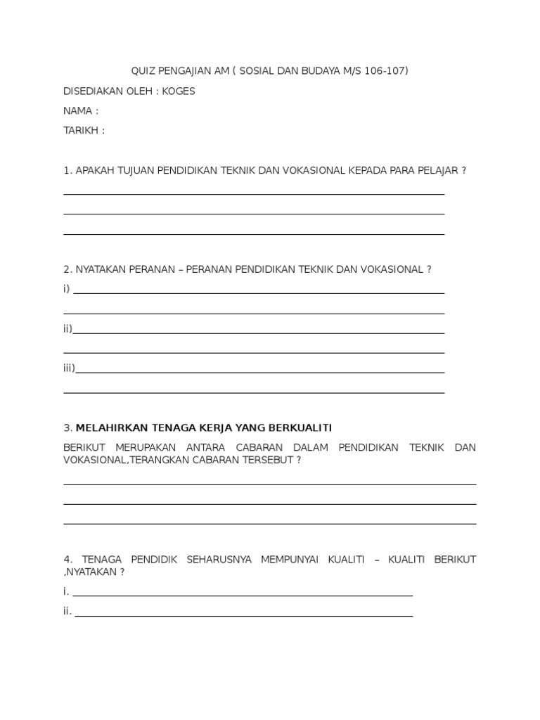Pendidikan Teknik Dan Vokasional Pengajian Am