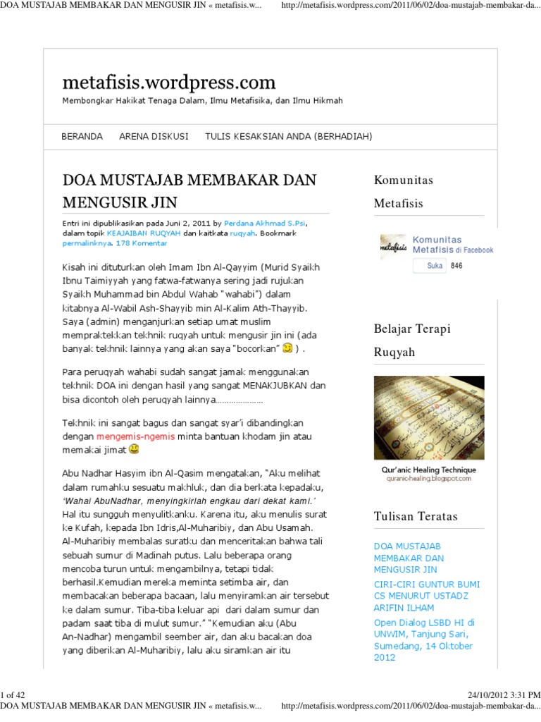 Doa Mustajab Membakar Dan Mengusir Jin Metafisis Wordpress